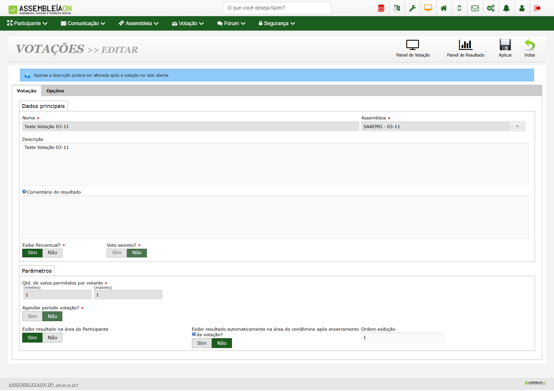 - Criação de Votações Flexíveis: Crie votações com pergunta única ou de múltipla escolha para consultar a opinião dos seus associados sobre diversos temas.