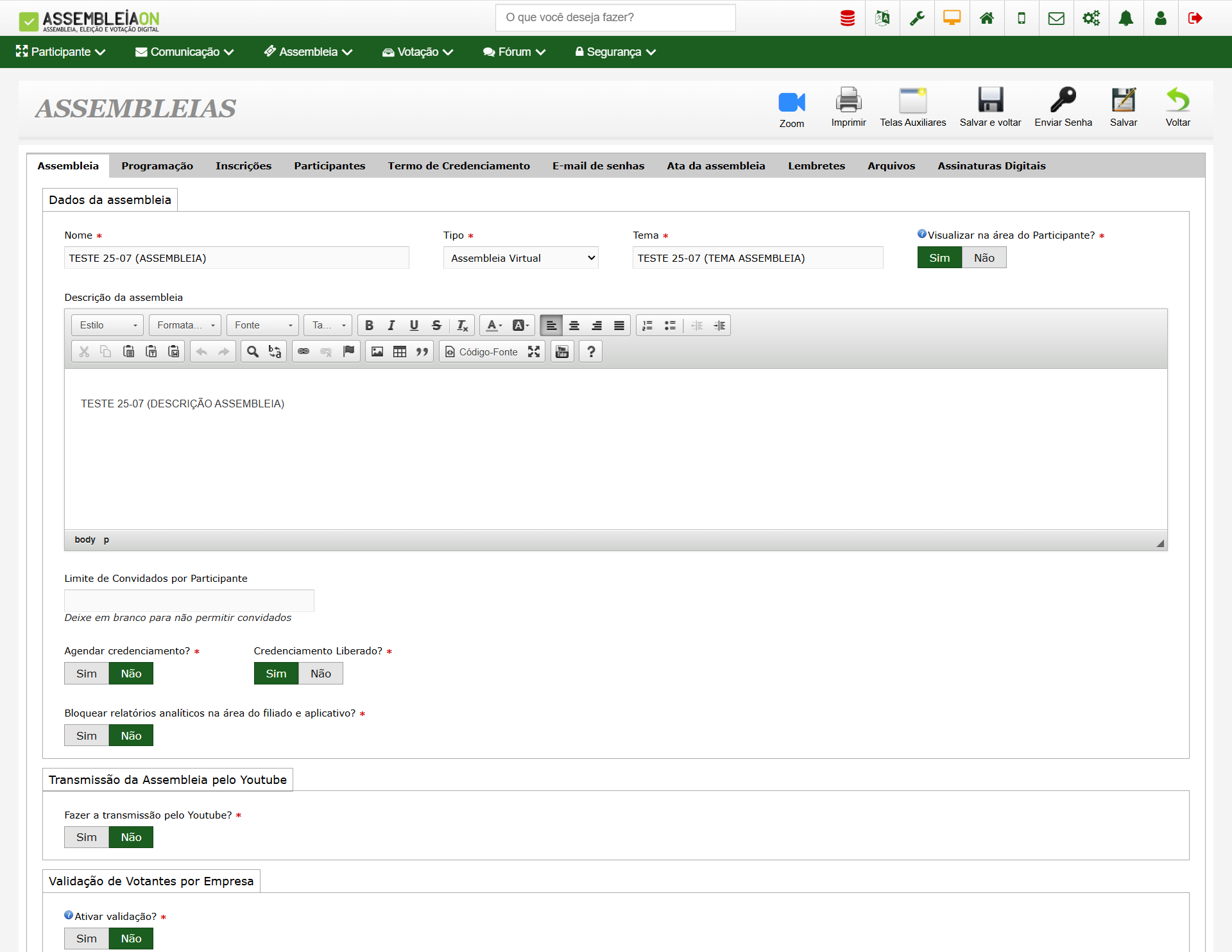 - Gestão Completa da Assembleia: Cadastre suas assembleias, controle a lista de participantes e importe dados de outros sistemas com facilidade.