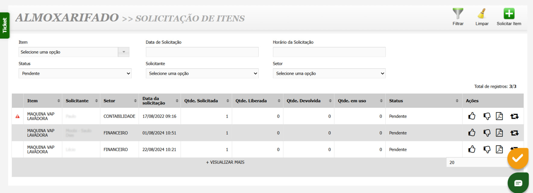 - Gestão de Entradas e Saídas: Registre movimentações de itens de forma individual ou em lote e gerencie o fluxo de solicitações e liberações de materiais para os setores.
