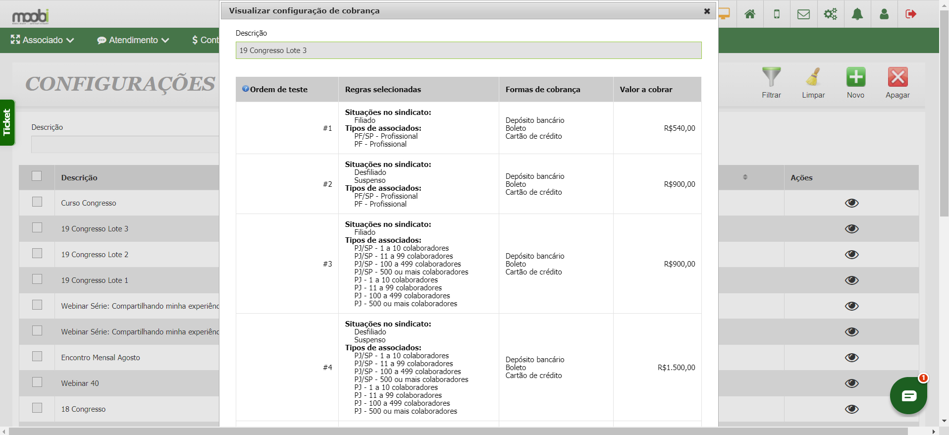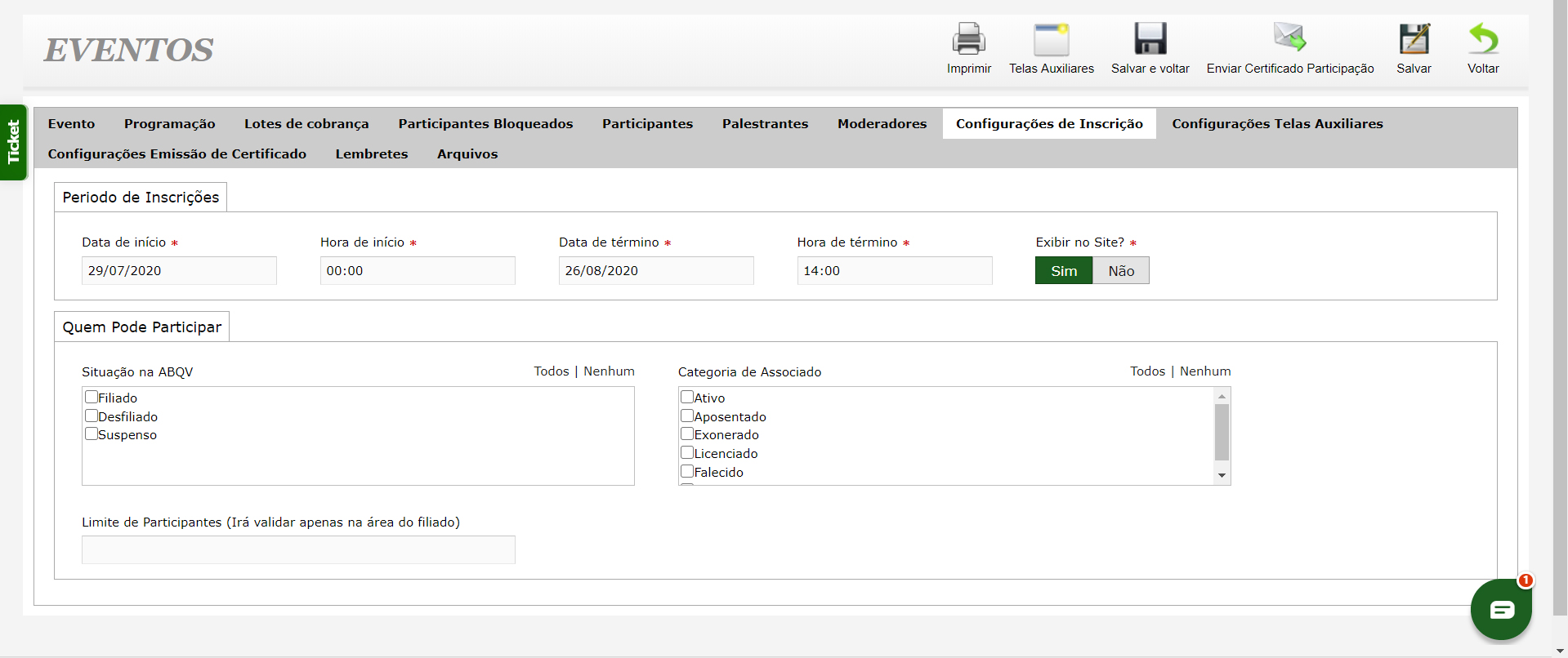 - Gestão de Inscrições Online: Controle todo o processo de inscrição, defina públicos (filiados, convidados), gira pagamentos e isenções, e permita que os associados se inscrevam pela área restrita.