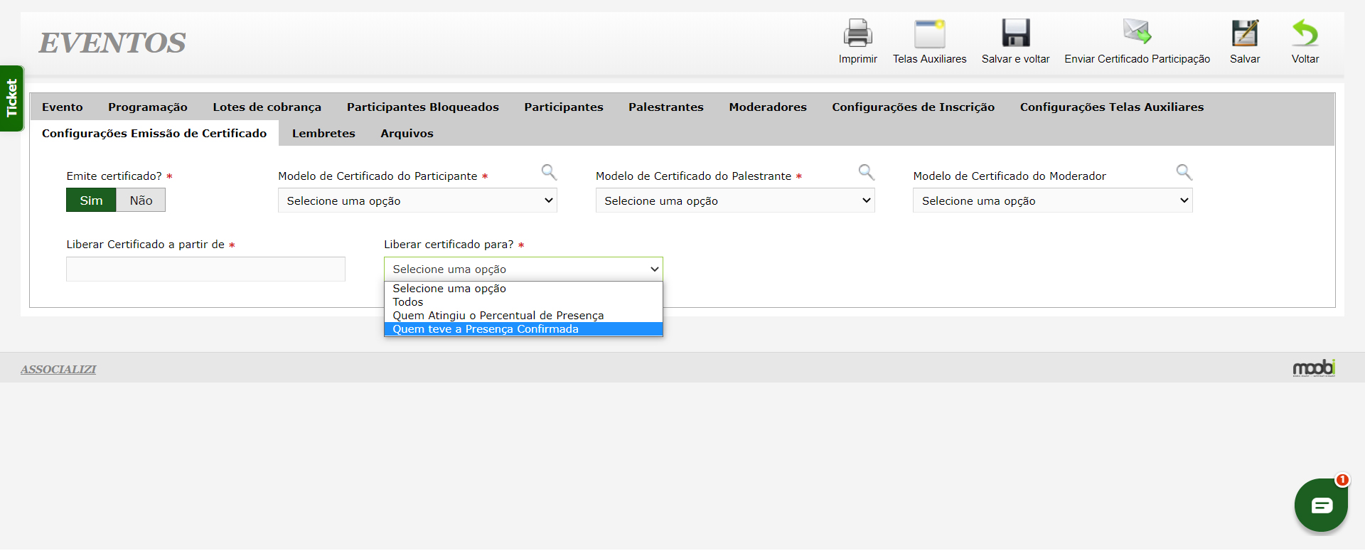 - Emissão de Certificados: Gere e envie certificados de participação por e-mail automaticamente, com controlo de carga horária e personalização para participantes e palestrantes.