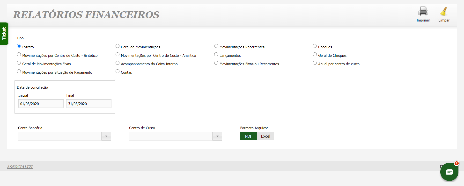 - Relatórios Gerenciais Completos: Tenha uma visão clara da evolução das suas finanças com extratos, gráficos e relatórios detalhados por centro de custo, conta bancária e muito mais.