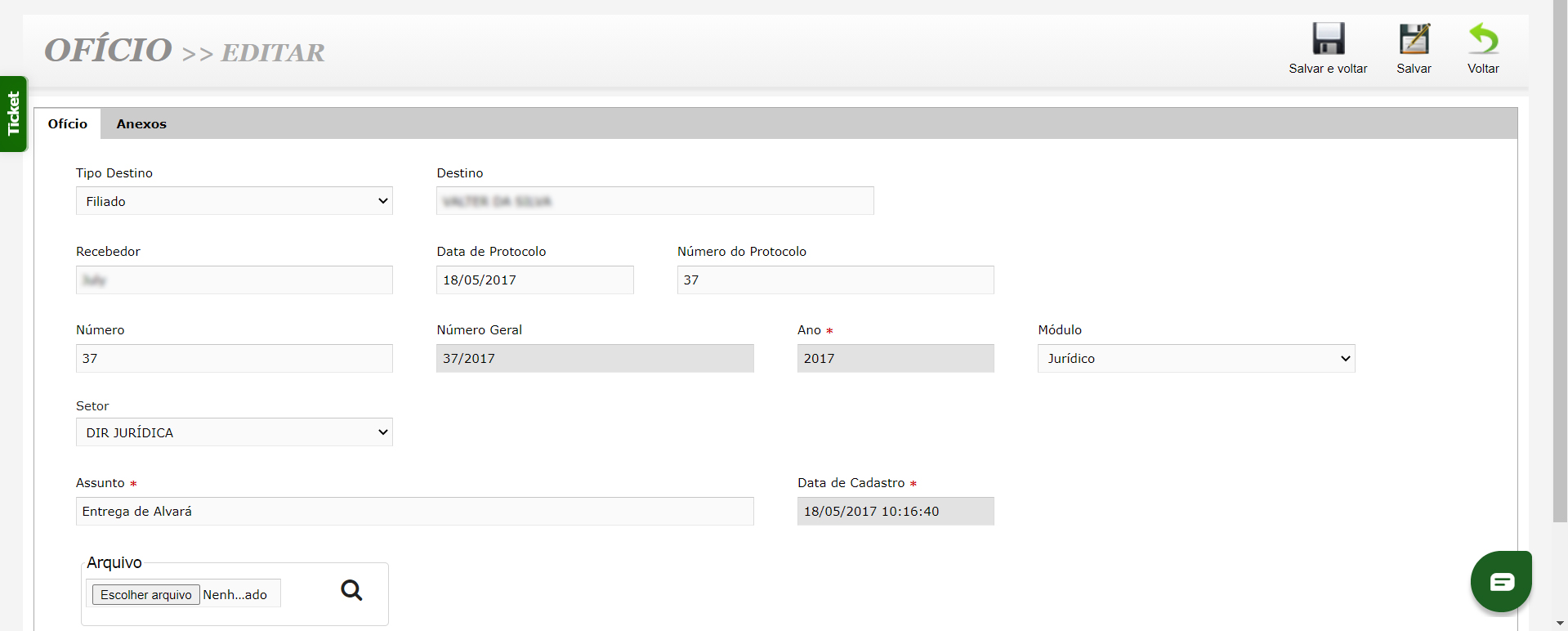 - Digitalização de Documentos: Anexe e armazene os ofícios digitalizados diretamente no sistema, eliminando a necessidade de arquivos físicos.