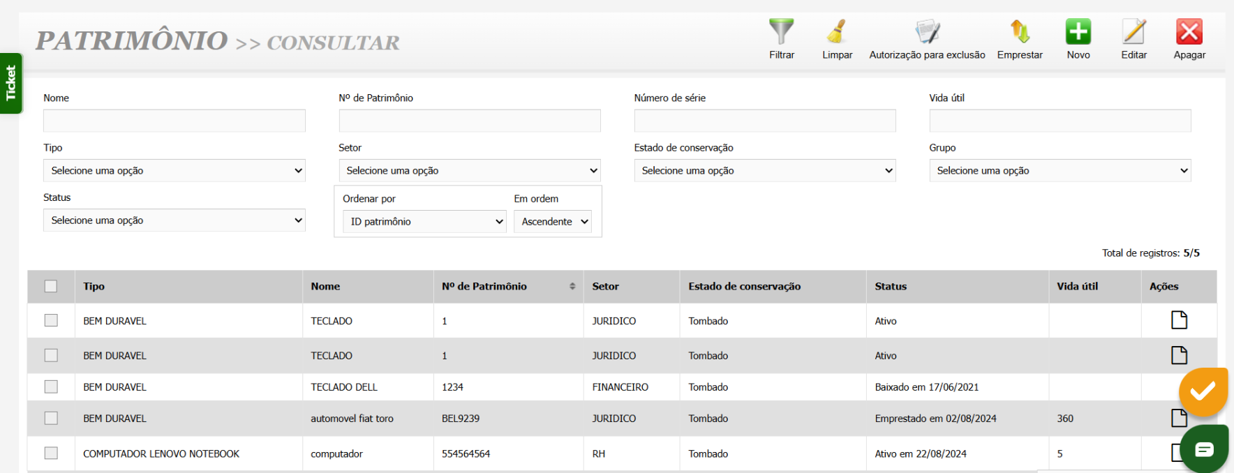 Módulo de Patrimônio