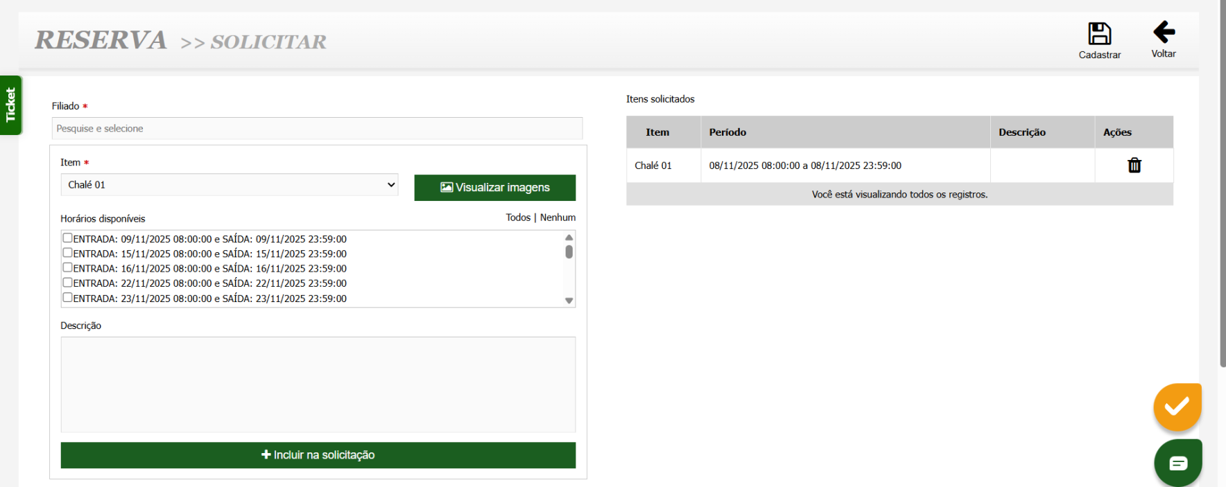 - Agendamento Online e Intuitivo: Cadastre os itens disponíveis para reserva (salas, auditórios, etc.) e permita que os filiados façam as suas próprias reservas através da área restrita.