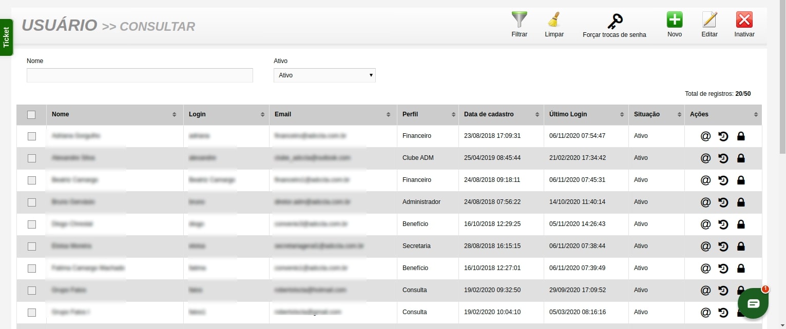 - Monitoramento e Alertas de Segurança: Receba alertas sobre acessos incomuns ou suspeitos, permitindo bloquear usuários instantaneamente para proteger os dados da sua entidade.